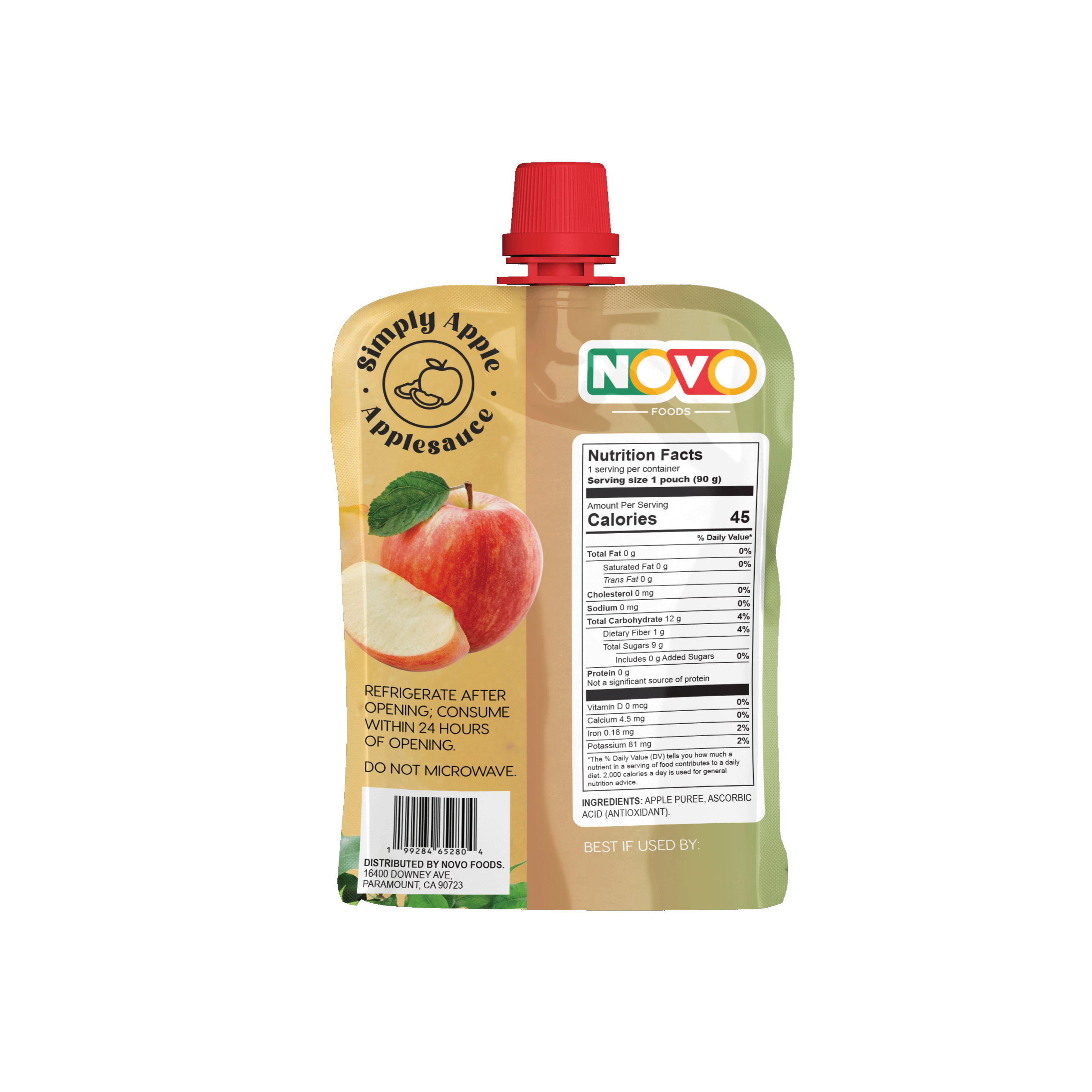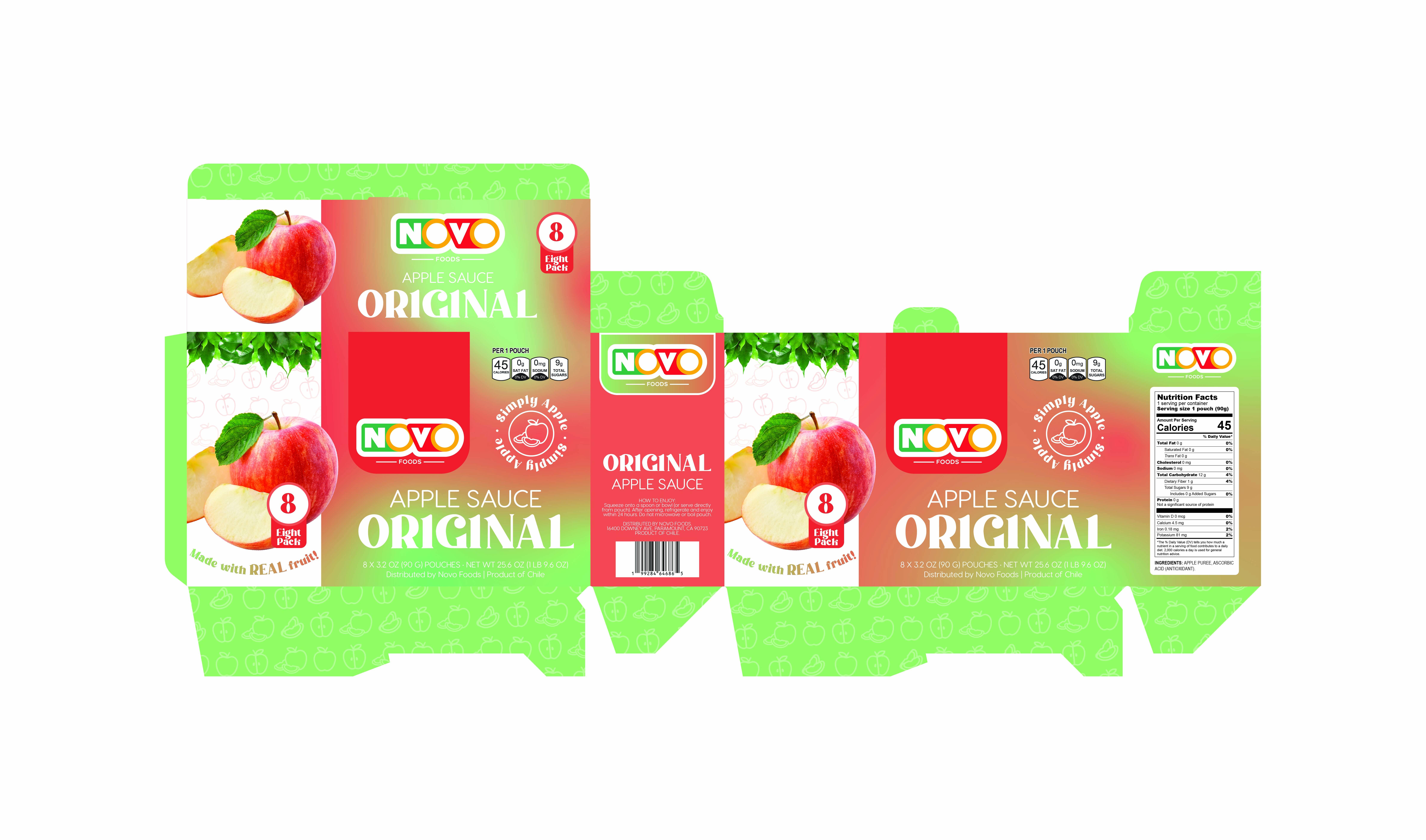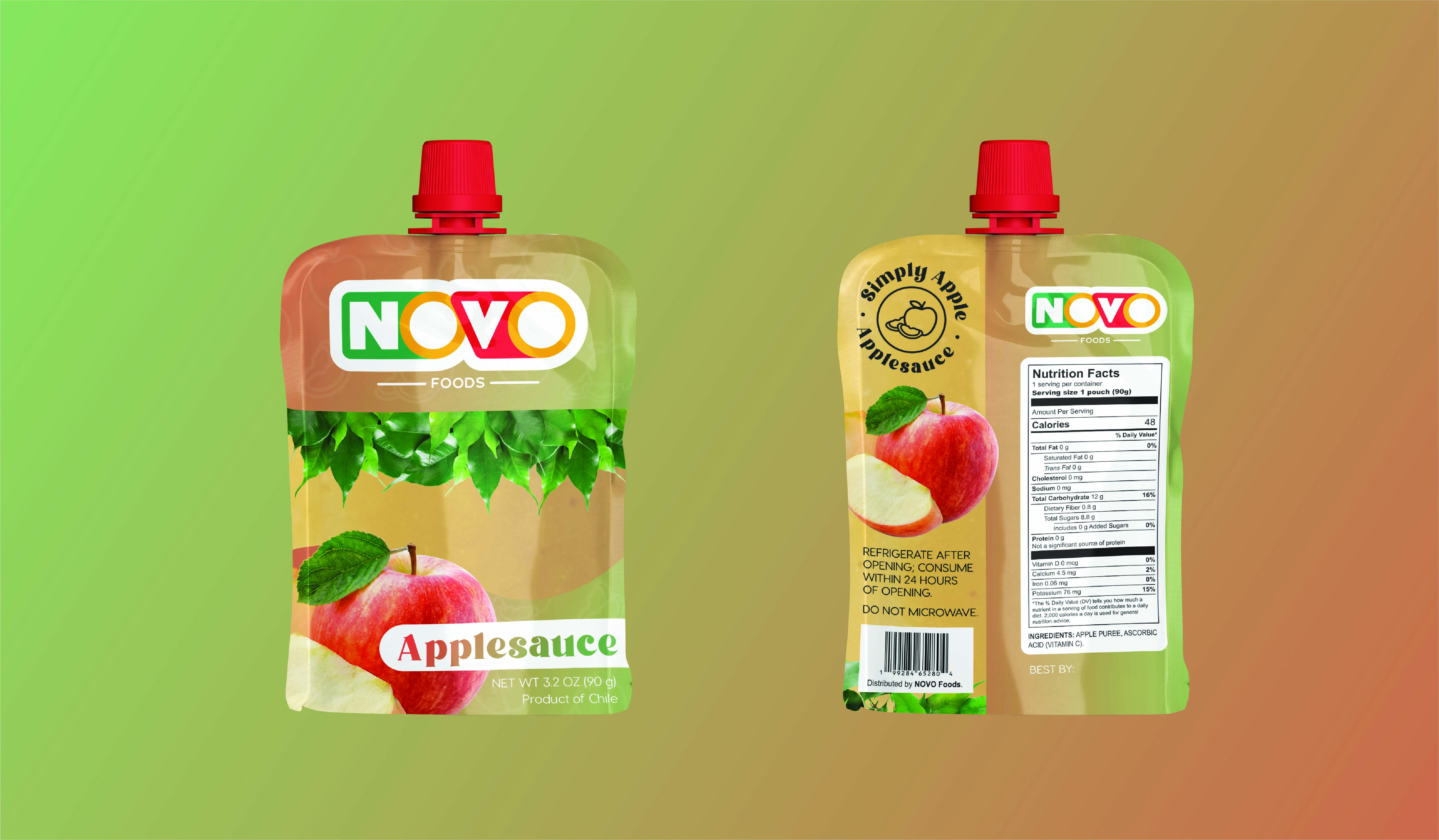 This project extended my collaboration with NOVO Foods, reflecting an ongoing brand relationship. The applesauce pouch was positioned for a new market channel and required a standalone design while potentially integrating earlier design conventions.